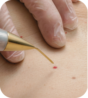 Αφαίρεση βλαβών με CO₂ ή διαθερμοπληξία για θηλώματα, υπερκερατώσεις, σπίλους και άλλες συχνές δερματικές αλλοιώσεις.