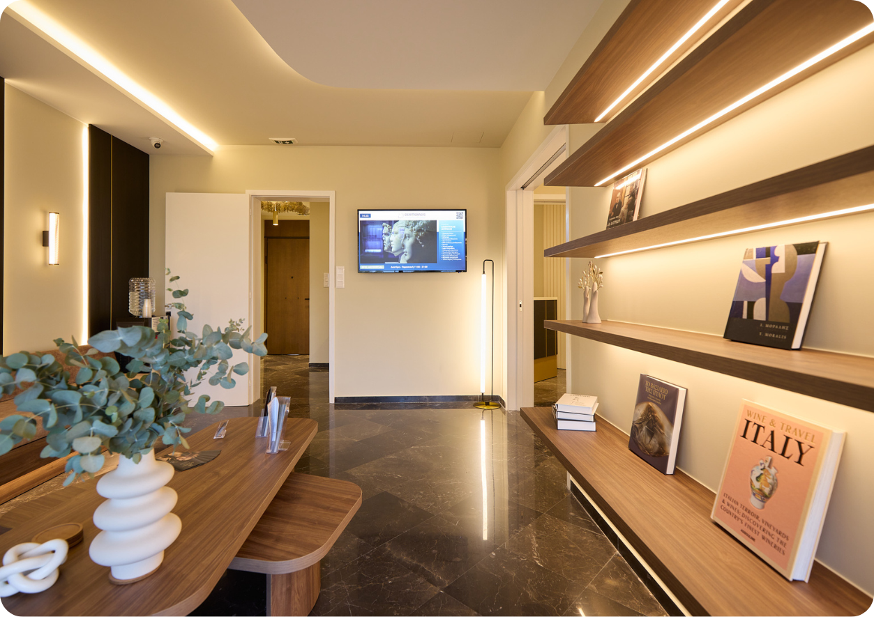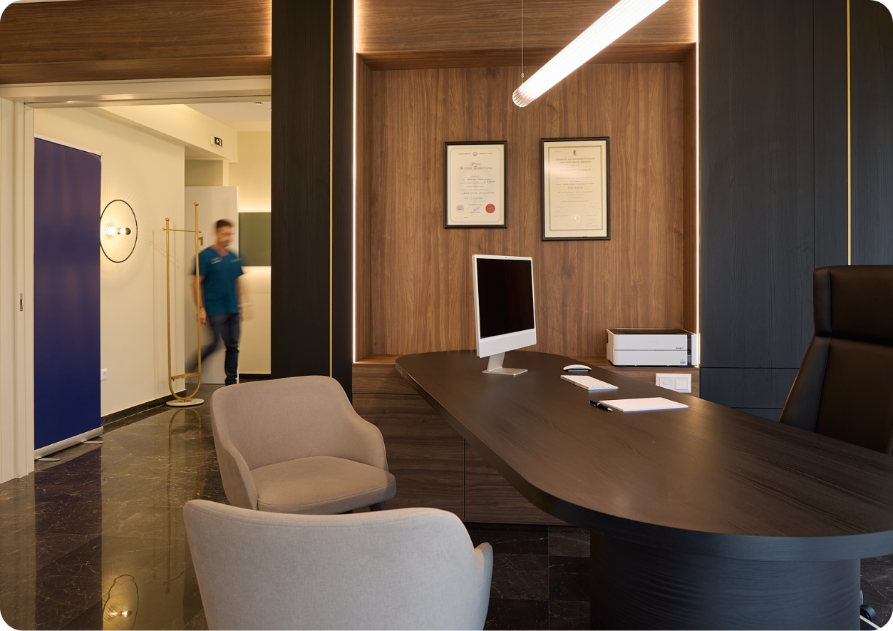 Το ιατρείο του Δρ. Καζάκου δεν είναι απλώς ένας χώρος θεραπειών, είναι μια αρχιτεκτονικά σχεδιασμένη εμπειρία ώστε η ιατρική γνώση να μετατρέπεται σε φροντίδα σε ένα premium περιβάλλον.